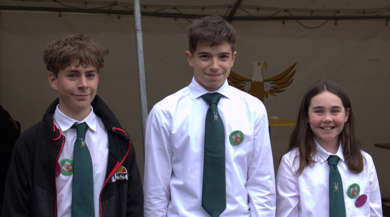 Schülerprinz Jakob Kösters mit Bela Rosenstein-Joosten (links) und Scheibenkönigin Stella Ingenhaag (rechts)